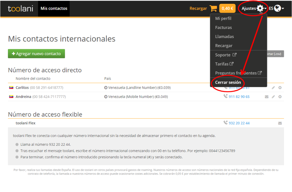 ¿Cómo puedo salir de mi área de clientes en el sitio web?